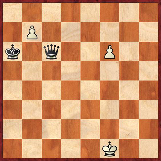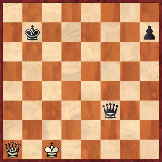 در پوزیسیون فوق به نظر می رسد سفید بازنده است ، ولی سفید فقط و فقط یک راه برای تساوی دارد !! آن راه چیست ؟ سفید شروع و مساوی می کند !!