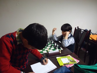 بچه ها تمرینات رو خوب انجام داده بودن و نیما ، محمد رضا و محمد صدرا مثل همیشه تمرینات رو حل کرده آورده بودن که از خانواده هر سه تشکر ویژه دارم !! امروز 1 ساعت زودتر آمدم چون کاری داشتم که می خواستم در کلاس انجام دهم ، بعد هم رفتم برای نیما یک کتاب شطرنجی جایزه گرفتم بخاطر زخمتش در مسابقات هفتگی و نتیجه خوبش !! نیمای عزیز در یکی دو جلسه قبل و این جلسه هَمَش می پرسه : آقا فردا مسابقه هست ؟ حدس خودم اینه که روحیّه مبارزه طلبی و لذّت مسابقه زیر زبونش مزه کرده و تازه داره کمی از فواید شطرنج رو متوجّه میشه !!!