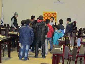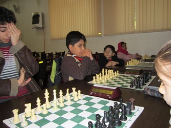 بعد از سلام و علیک و احوالپرسی متوجه شدیم مسابقه ساعت 9 و نیم شروع میشه و بجای 5 دور 7 دور هم هست ! خُب بهتر چون تمرین بیشتری برای بچه ها می شود ! دور اوّل مشخص شد که 20 شرکت کننده داریم ! فکر می کنم 1 نفر از مدرسه شهماتِ استاد محجوب آمده بود و حدود 6 نفر از بچه های شهرداری محلاتی که ظاهراً در یک خانه فرهنگ آموزش می دیدند و مربیشان هم از اواسط مسابقه همراهی شان می کرد و بقیه از خود بچه های مدرسه شطرنج بودند !!