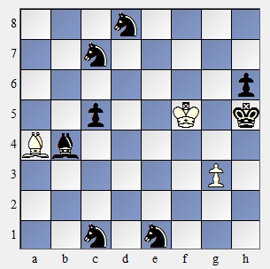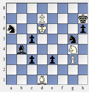 یک حرکت ظاهراً آرام ولی به غایت جدی و مهم. اسب e1 باید به خاطر تهدید ماتی Ff3 و اسب d8 نیز به خاطر تهدید ماتی Ff7 سر جایشان میخکوب شوند. سایر سوارهای سیاه نیز قادر به هیچ گونه عمل نیستند. سفید خود نیز تهدید مات در دو حرکت Fc4-e2# دارد.