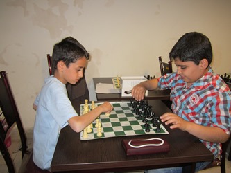 محمدرضا آنقدر برای بازی عجله دارد که هنوز یزدان حرکتش را تکمیل نکرده آماده حرکت است . البته بچه ها یادمان نرود باید با همان دستی که حرکت می کنیم با همان دست ساعت را بزنیم ، بنابراین به نظر می رسد گارد محمدرضا مناسب نباشد .