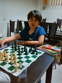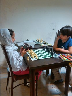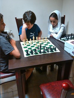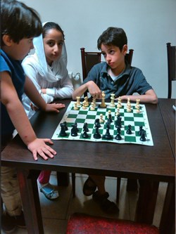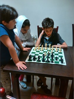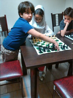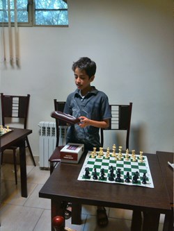بچه ها نشان دادند که اگر بطور مرتب هر روز یکی دو ساعت کار کنند ، خیلی زود می توانند پا در عرصه مسابقات قهرمانی بگذارند و موفقیت های چشم گیری داشته باشند . بعد از اتود شروع بازی که زدیم ، رفتیم سراغ بازی ، در بازی ها سروینا و محمدصدرا با هم بازی کردند و خودم با یزدان کبیر . یزدان خیلی خوب بازی را شروع نمود ولی دقیقاً در جایی که باید طبق اصول عمل می نمود ، از اصول تخطی کرد و خُب نتیجه شد باخت یزدان کبیر .
