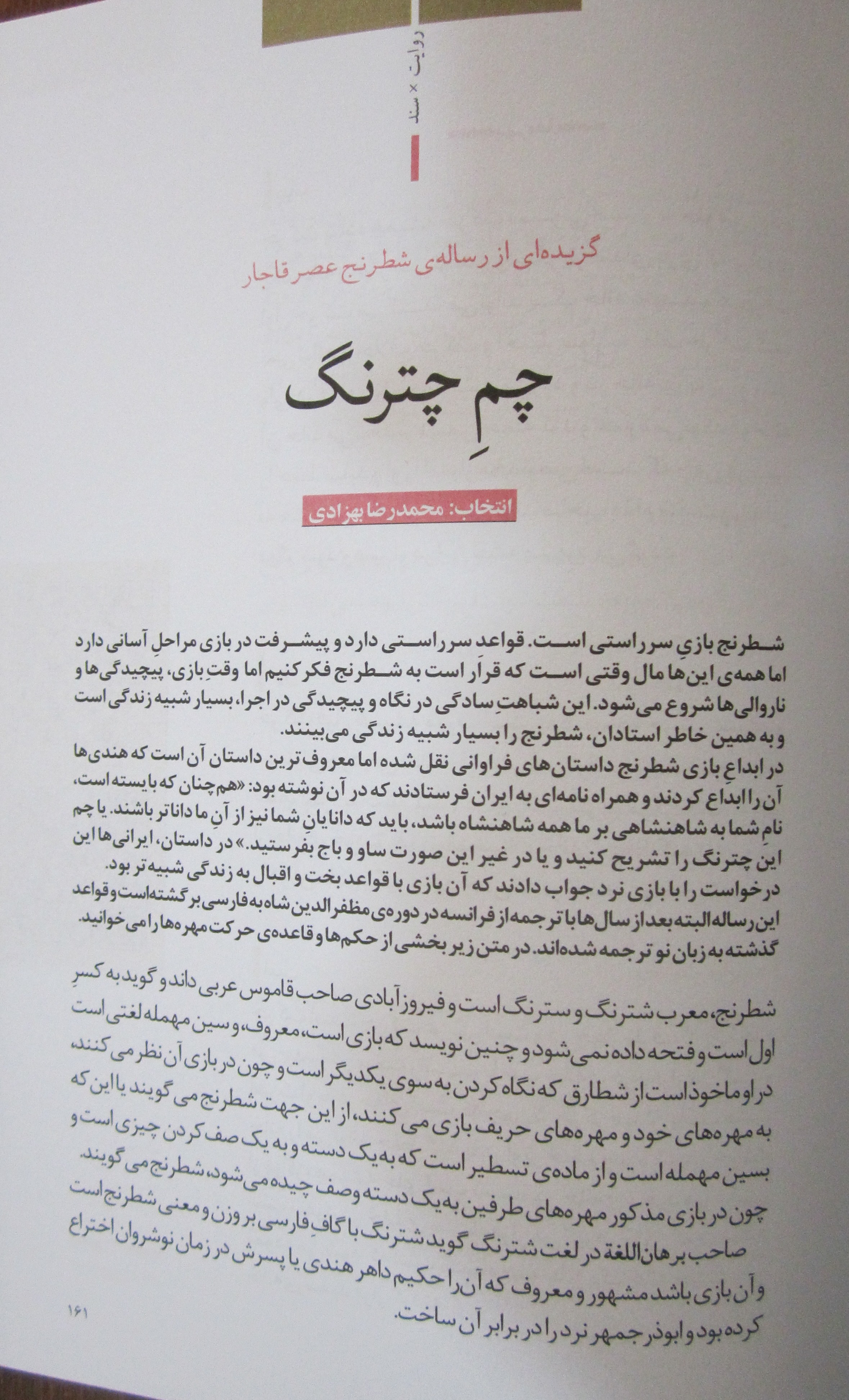 در چند ماه اخیر دو نمونه از این موارد در مطبوعات استفاده شده است که آنها را در این مطلب و مطلب بعدی میآوریم تا جامعه شطرنج استفاده کند و دوستانی که ندیدند بهره ببرند. اگر کیفیّت عکسها پایین است هم به بزرگواری خود ببخشید و عذر ما را بخاطر کمبود امکانات پذیرا باشید تا انشاءالله شاید در آینده امکان اسکن این موارد ایجاد شد و استفاده از آنها سادهتر.